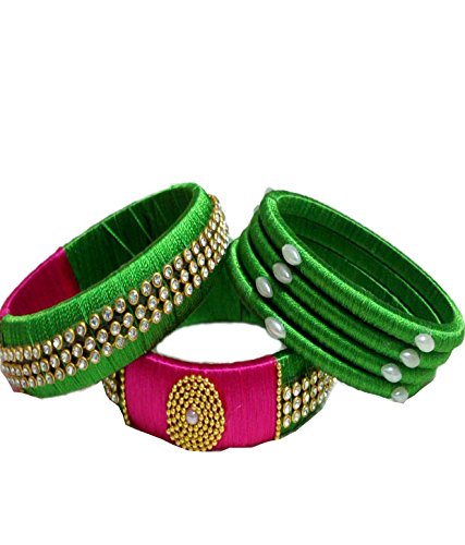 Blue jays hub silk thread bangles set of 6 which contains ONE cut bangles 2 and FOUR cut bangles 4 made by artisans
